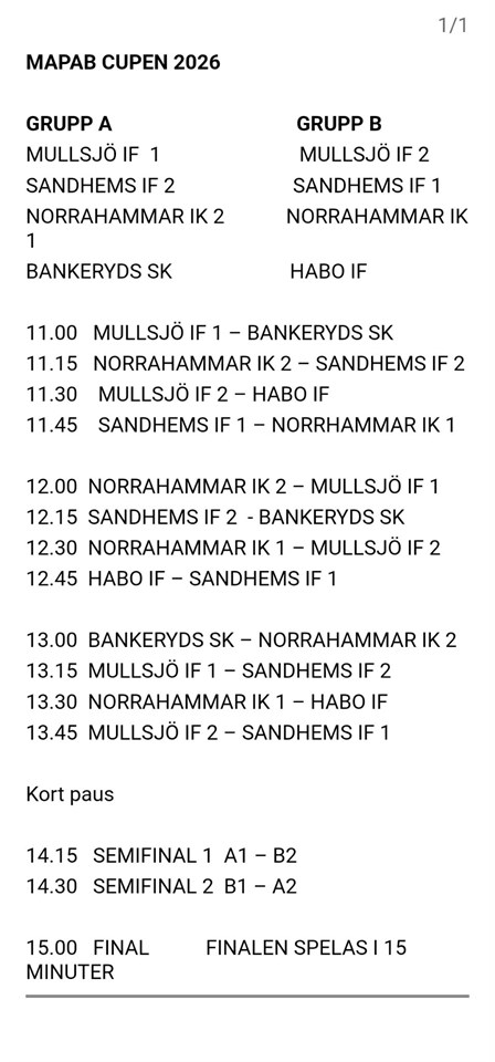 | 1. | (311) | Norrahammars IK |